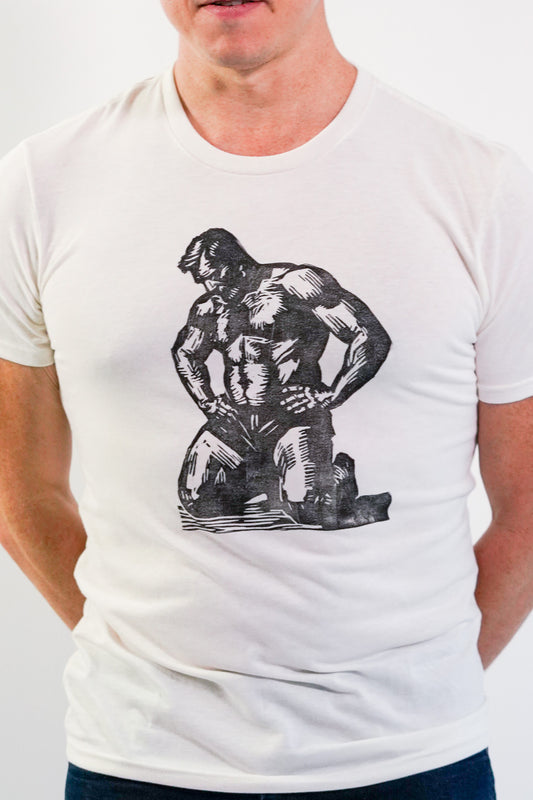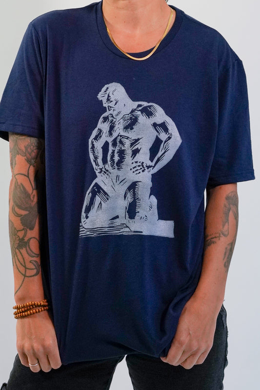 Kneel Stamp | White on Night Sky - Short Sleeve Tee