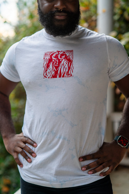Man Stamp | Red on Sky Tie Dye - Short Sleeve Tee