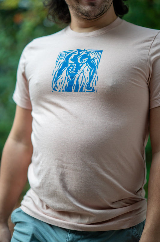 Man Stamp | Blue on Peach - Short Sleeve Tee